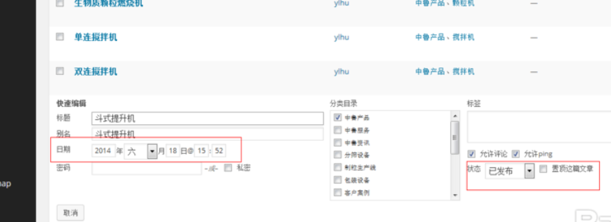 3、更改快速编辑里面的日期。后面的状态记住要改为已发布,所以发布时间不能比当前时间晚。