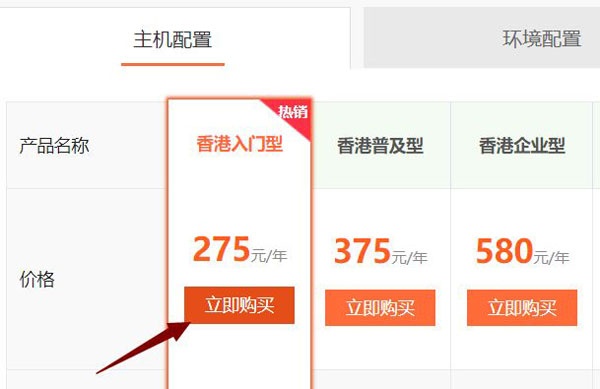 - 点击打开空间开通地址:https://www.xidushuma.com/services/webhosting/twhost.asp,选择自己想要开通网站空间的大小,点击“立即开通”;(如果你是首次学习建网站,推荐选择”香港入门型“。)