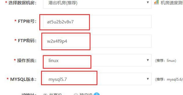 - 填写空间的FTP信息,包括FTP用户名和FTP密码;(FTP用户名和FTP密码是系统自动生成的,可以不用修改,直接使用系统生成的用户名和密码。)
