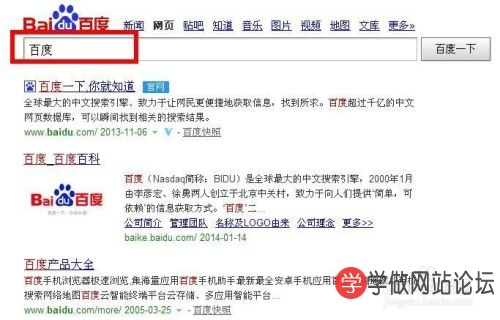- 打开百度首页,在首页中搜索我们喜爱的网站,在搜索结果中找到网站