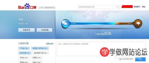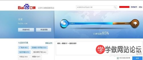 - 在打开的百度口碑平台中,选择对改网站的一些操作,包括点赞,和发表对网站的评论